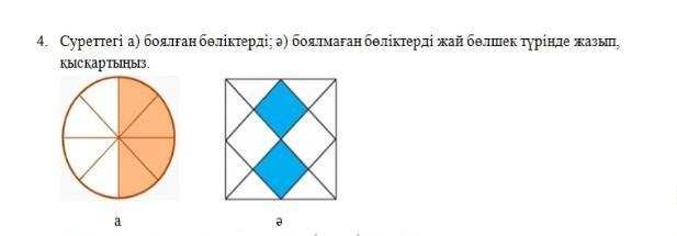 Обозначьте а) окрашенные части б) неокрашенные части на картинке простыми дробями.