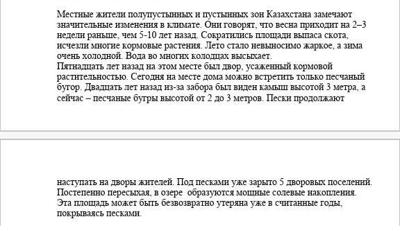 Климатические изменения привели к таким последствиям, как наступления песков и увеличение аномальных погодных явлений: сильная жара, засухи, пыльные бури.