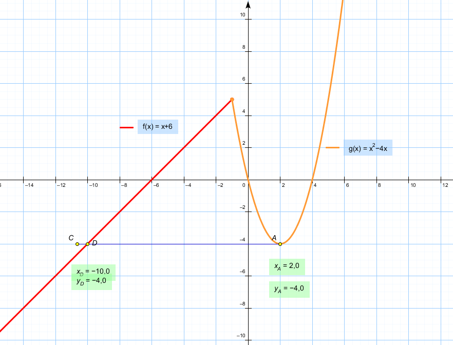 Как видно из графика прямая y=c имеет с графиком ровно две общие точки при С=-4