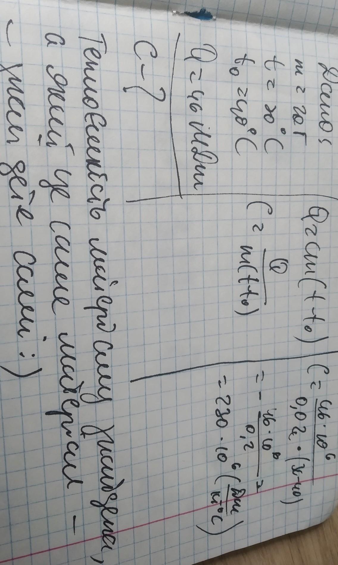 під час охолодження кульки масою 20 г від 40 до 30° виділилося 46 ДЖ теплоти.З якого матеріалу виготовлена кулька