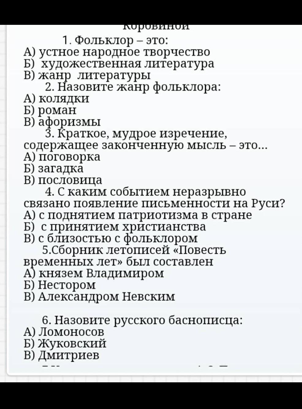 1. А 2. А 3. В 4. Б 5. Б 6. В