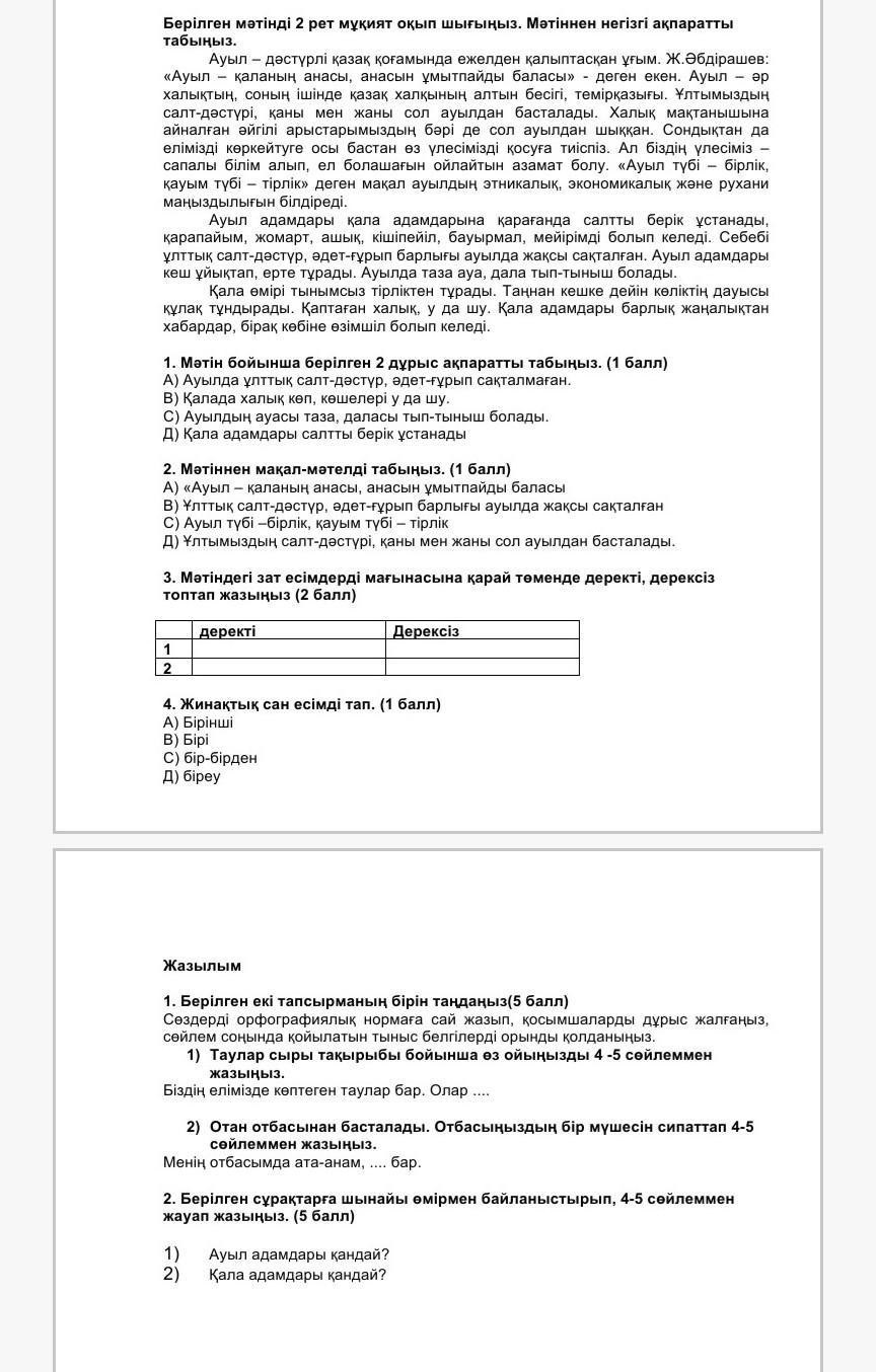 пазаза помогите сейчас сдавать пожалуйста не игнорти дам 40 баллов 6 класс сор по каз.яз