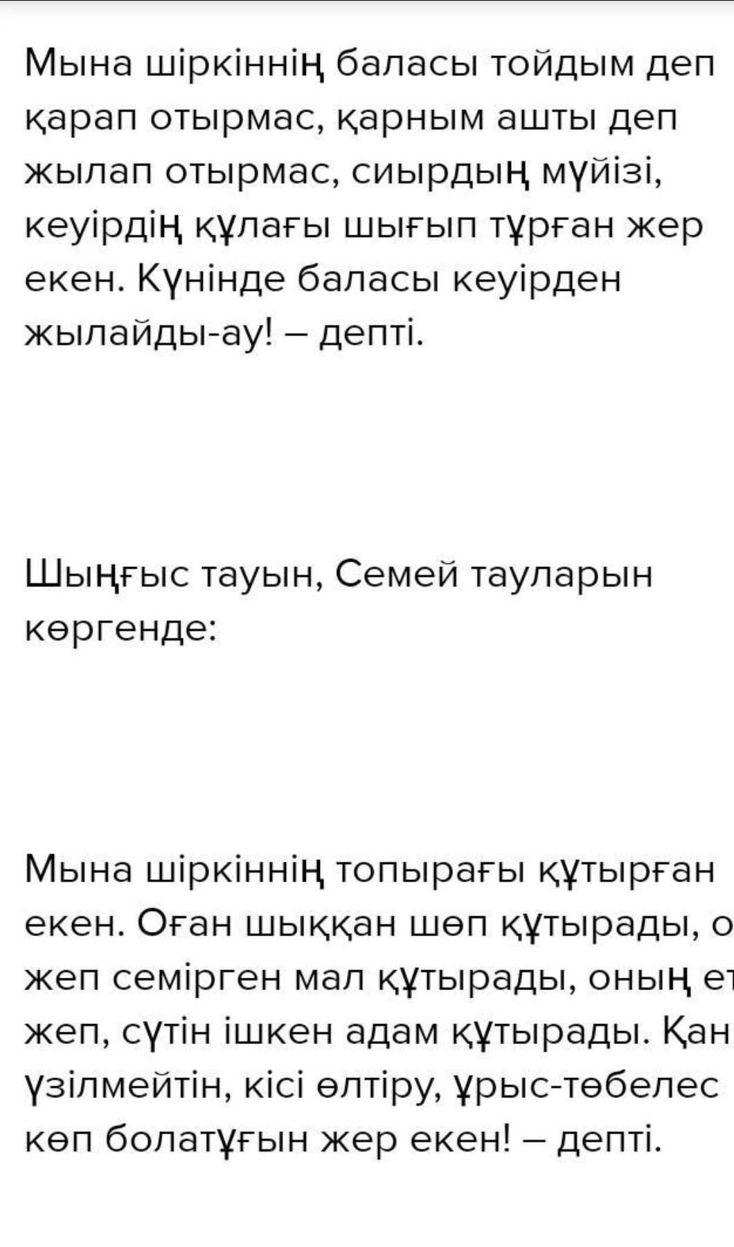 9.«Асан қайғының жерге айтқан сыны» аңызындағы автор идеясын анықтап, сараптама жасаңыз. 4-5 сөйлем көлемінде өз көзқарасыңызды дәлелдеп, жазба жұмысын жазыңыз.