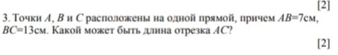 Точки а, в и с расположены на одной прямой, причем ав=7см, вс=13см. какой может быть длина отрезка ас?