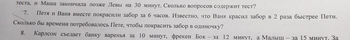 7 задача, можете решить с таблицей(то есть расписать про Ваню и Петю, там время, производительность, работа) пожалуйста