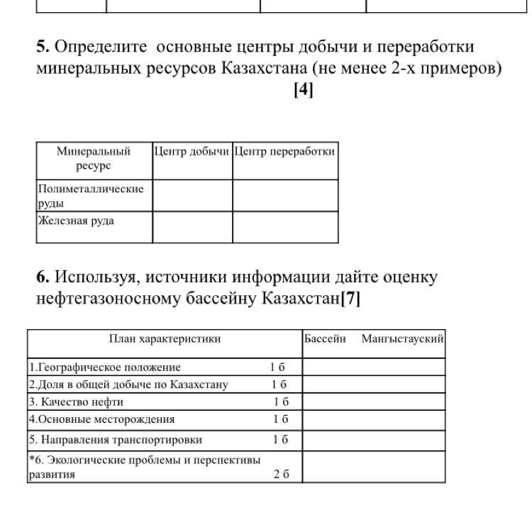 5. Определите основные центры добычи и переработки минеральных ресурсов Казахстана (не менее 2-х примеров) [4]