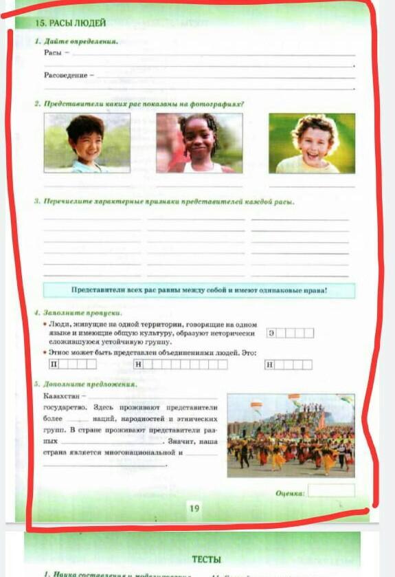 1. У представителей монголоидной расы жёлтый цвет кожи, прямые чёрные волосы, узкие карие глаза, большое уплощённое лицо, выступающие скулы и слабо выступающий нос.