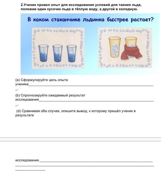 а) цель - осознать в каком стаканчике быстрее будет таять лёд