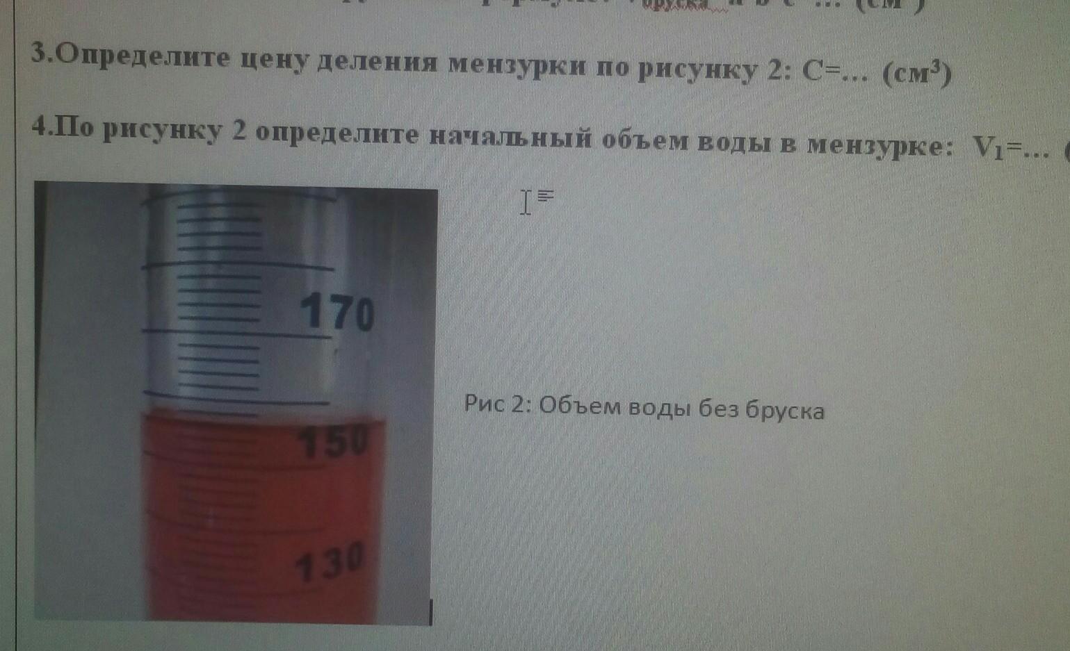 Определение цены деления шкалы: найти два ближайших штриха шкалы, возле которых написаны значения величин. Вычесть из большего значения меньшее. Полученное число разделить на число делений (промежутков), находящихся между ними.