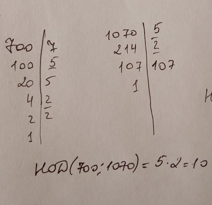 НОД(700, 1070) = 2•5 = 10