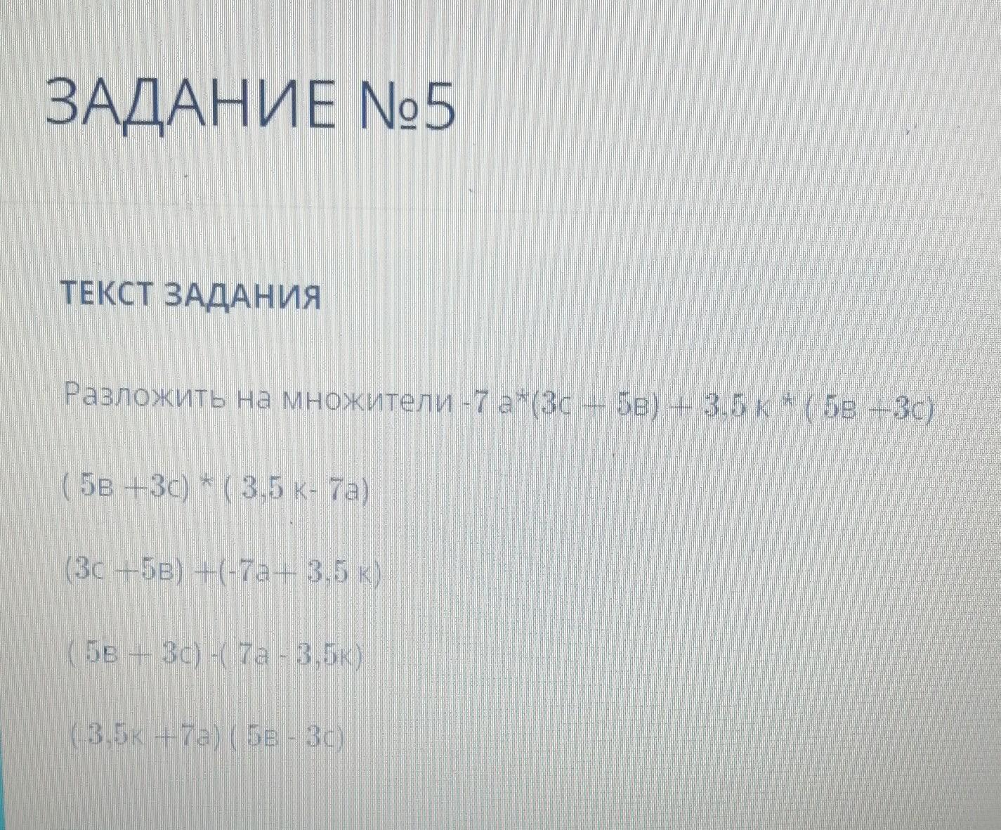 Разложить на множители -7a3c - 5в) - 3,5кг (5B +3c)