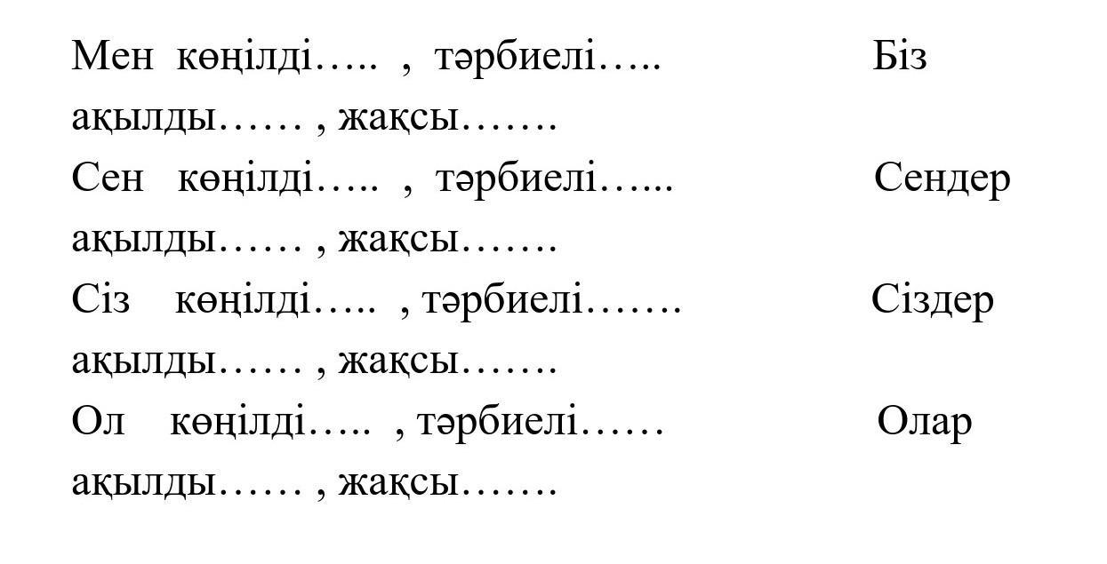 Мен қөңілдімін, тәрбиелімін, ақылдымын, жақсымын.