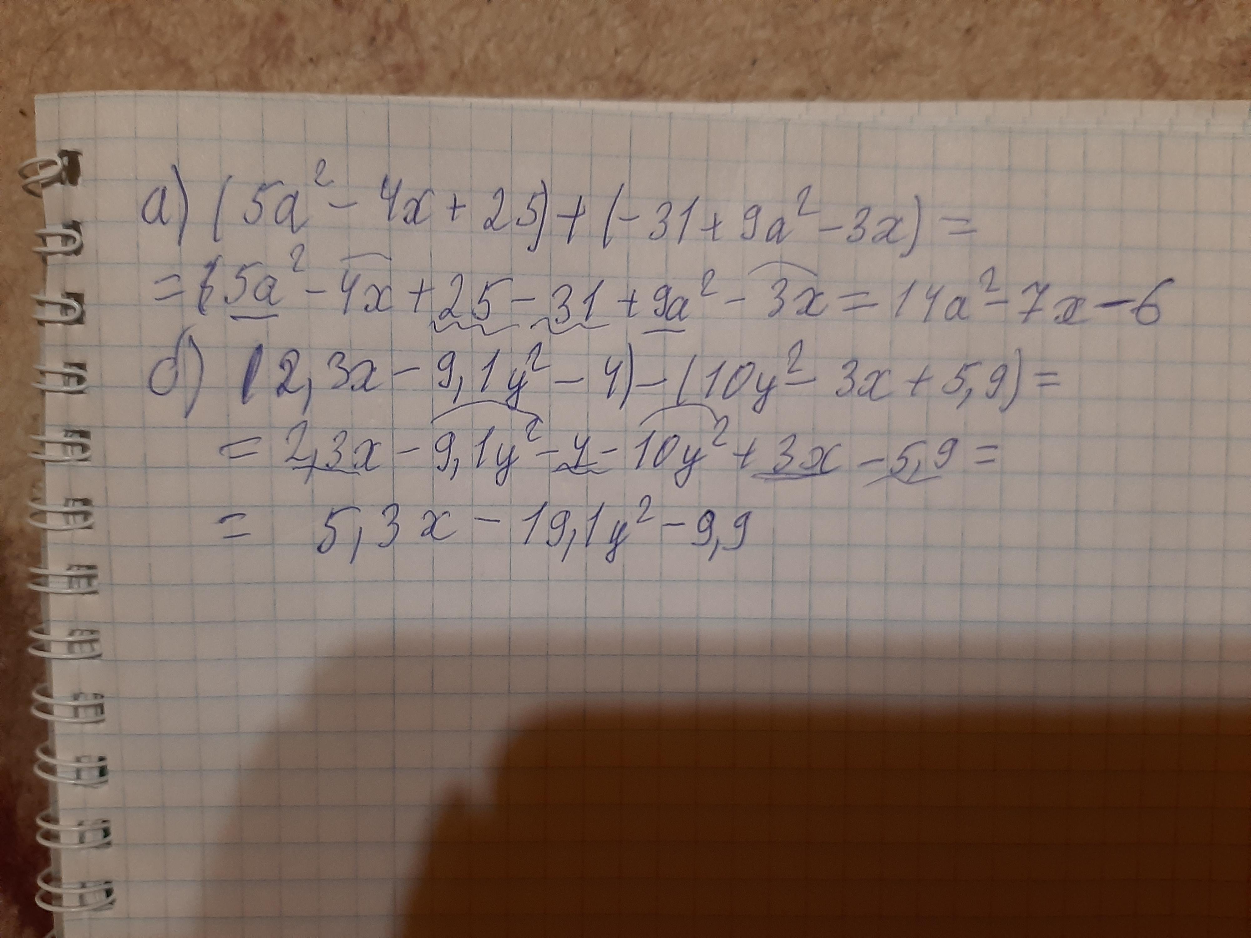 в) (2,3х -9,1у2- 4) - (10у2 -3х+5,9).
