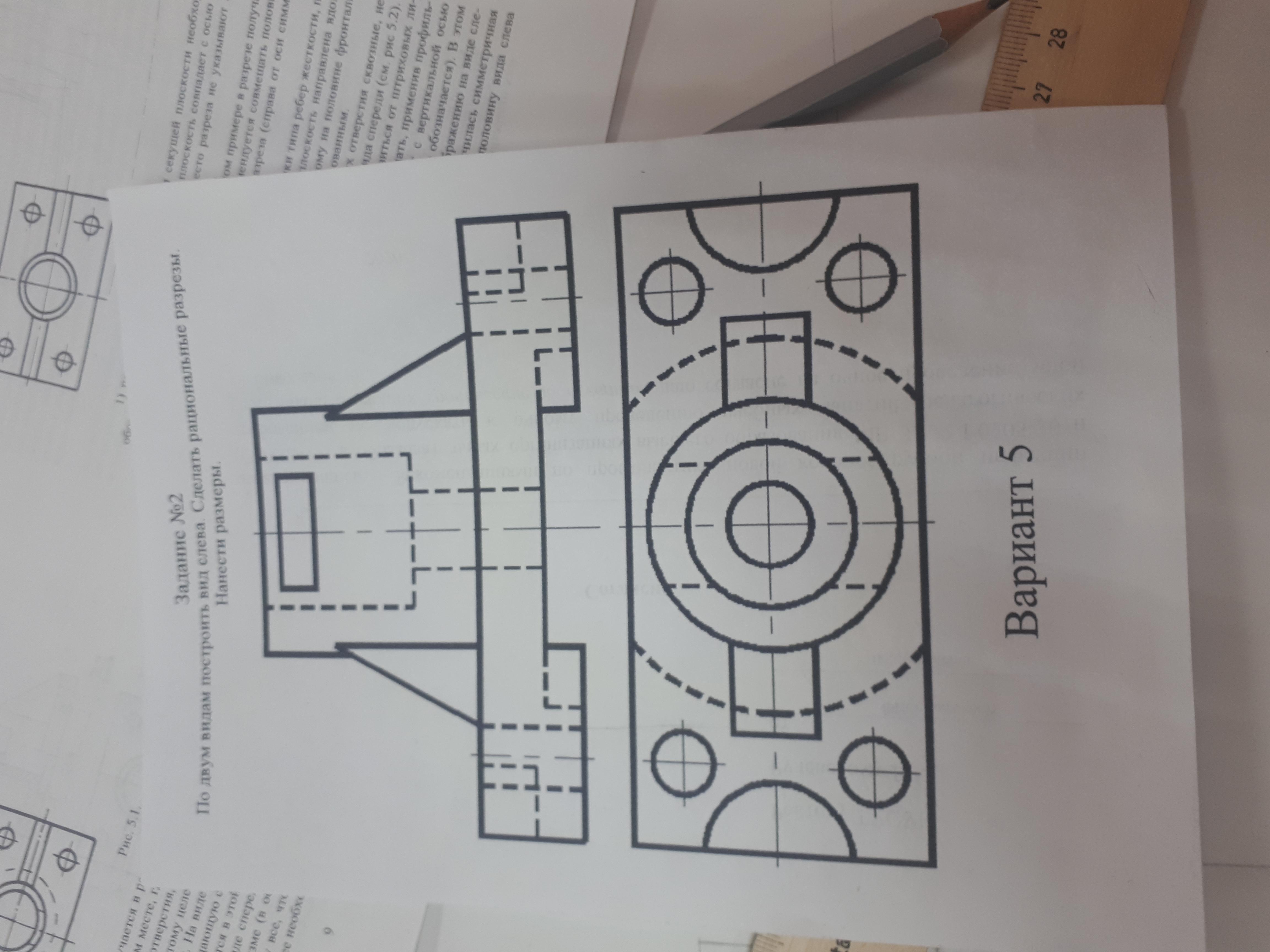 Главный вид: 1/2 вида + 1/2 фронтального разреза + местное сечение.