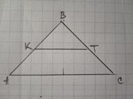 Дано: ΔАВС; АВ=ВС; Р=24 см; КТ - средняя линия; КТ=4 см. Найти АВ, ВС, АС.