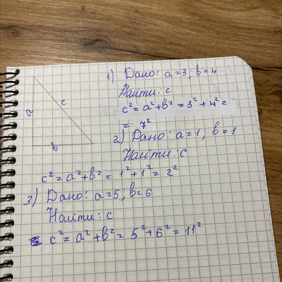 дите гипотенузу, если: 1) а = 3, b= 4; 2) а=1, b=1;
