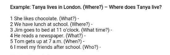 Example: Tanya lives in London. (Where?) – Where does Tanya live?