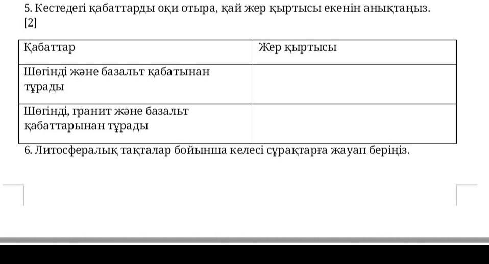 Шөгінді және базальттан жер қыртысы,ал келесісі мұхит қыртысы
