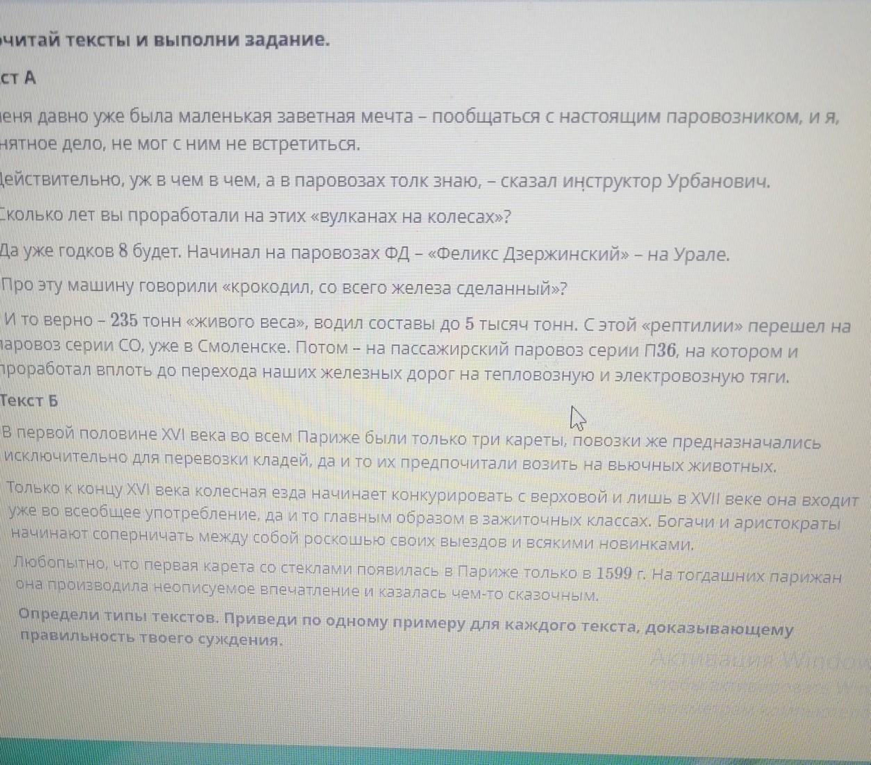1)Определи типы текстов. Приведи по одному пр Перу для каждого текста, доказывающему правильность твоего суждения.