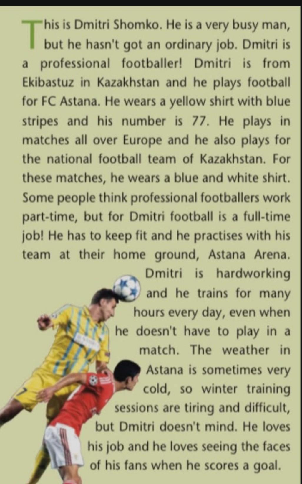 4)Dmitri only plays football matches in Kazakstan.