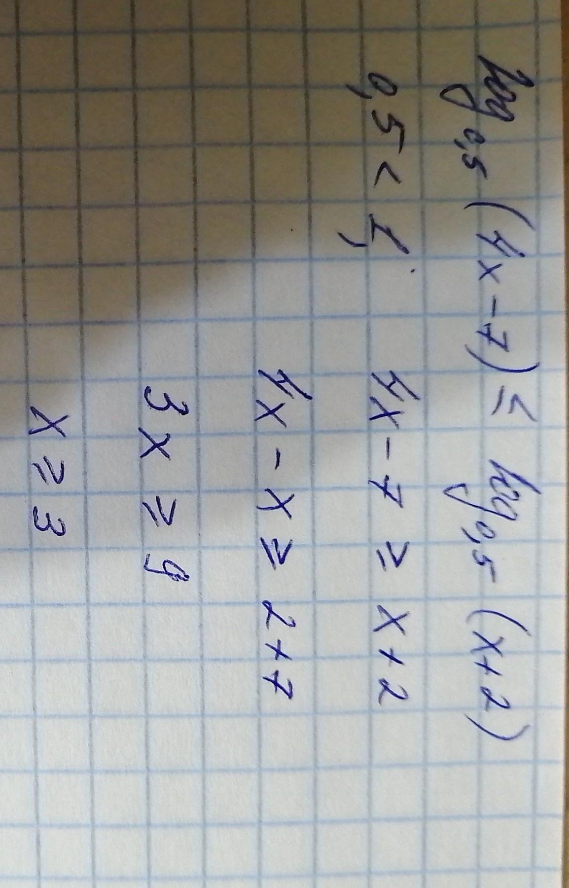 Убирая логарифмы меняем знак, собираем переменные с одной стороны, числа с другой, и решаем простое неравенство