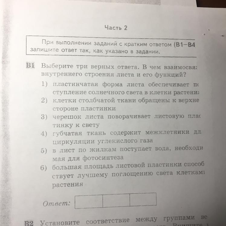 Выберите три верных ответа. В чем взаимосвязь внутреннего строения листа и его функции?