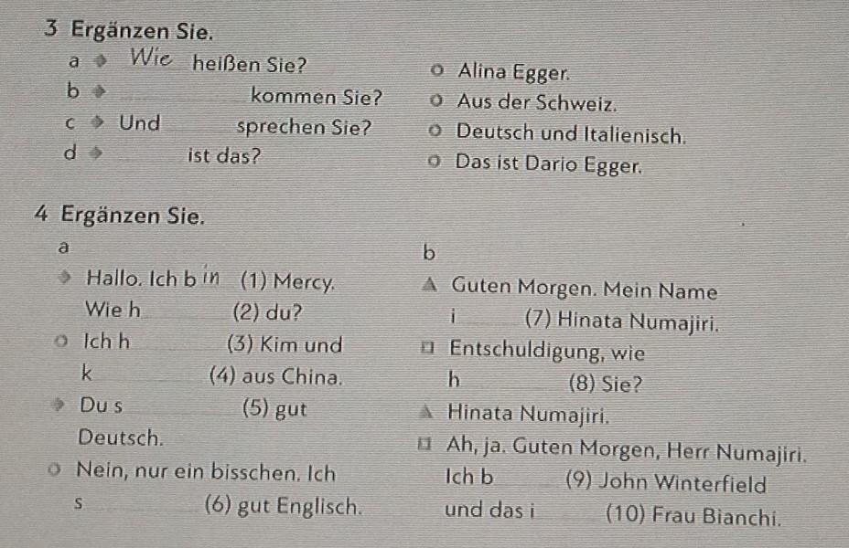 4. a) heisst, heisse, komme, sprichst, spreche.