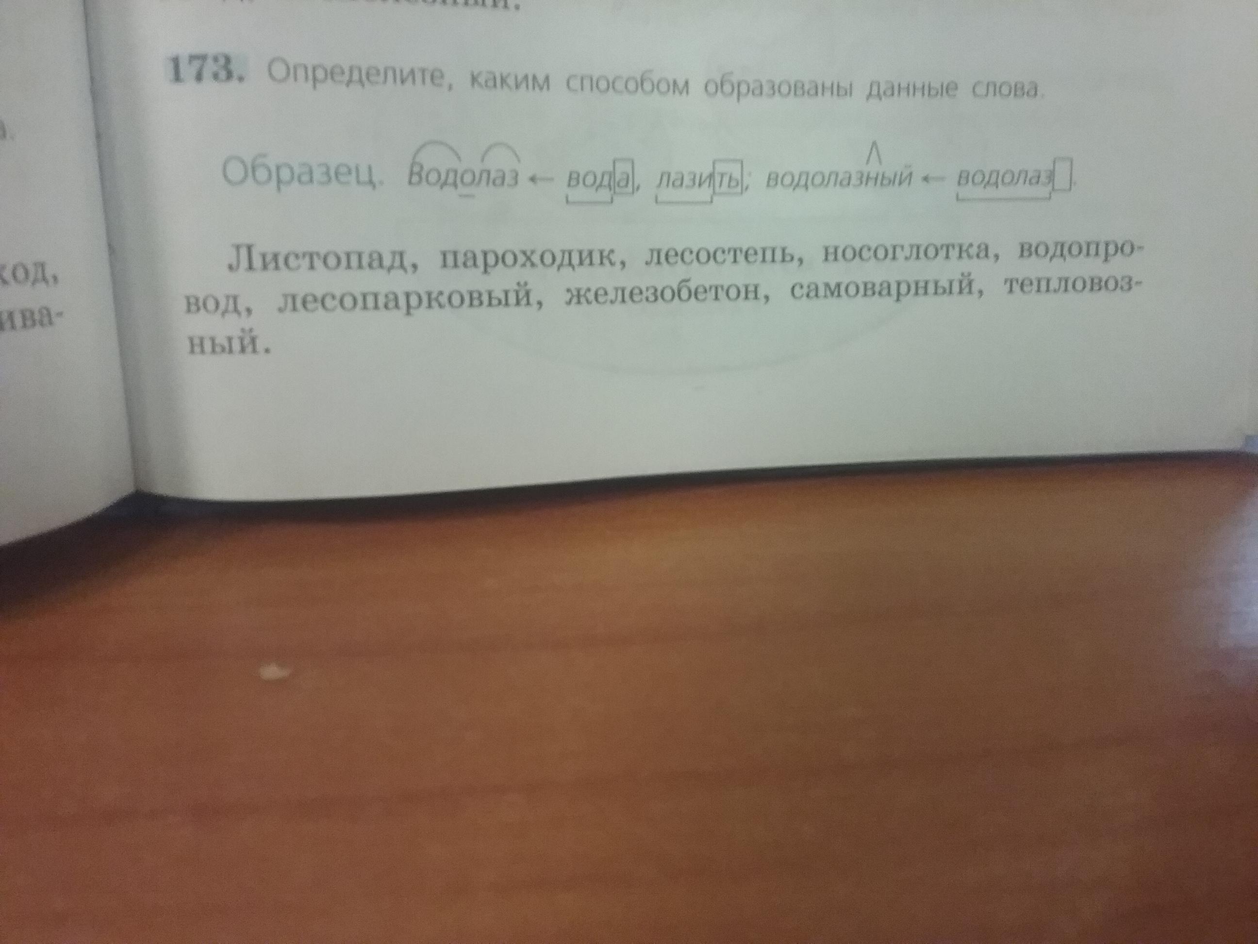 листопад-лист(основа),соединительная гласная о,падать(основа пад),листопадный(суффикс н). Пароходик-пар(основа),соединительная гласная о,ходить(основа ход) суффикс ик) параходный(суффикс н) Лесостепь-лес(основа),соединительная гласная о,степь(основа),лесостепный(суффикс н). Носоглотка-нос(основа),соединительная гласная о,глотка(основа),носоглотный(суффикс н). Водопровод-вода(основа-вод),соединительная гласная о,провод(основа),водопроводный(суффикс н). Лесопарковый-лес(основа),соединительная гласная о,парк(основа),суффикс ов,окончание ый. Железобетон-железо(основа),бетон(основа),железобетонный(суффикс онн). Самоварный-сам(основа),соединительная гласная о,варит(основа-вар),суффикс н. Тепловозный-тепло(основа),возить(основа-воз),суффикс н.