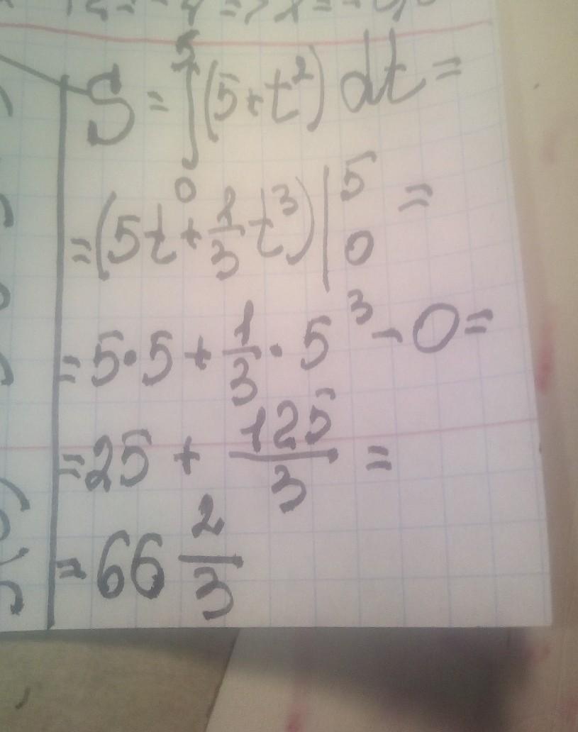 Найдите путь материальной точки, скорость которой v = 5 + t² изменяется от времени t = 0 до t = 5.