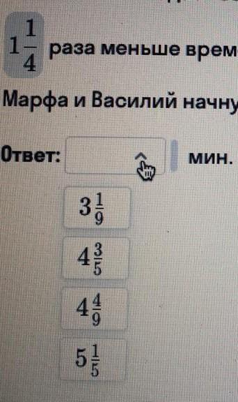 кот василий съедает сосиску за 10 мин а собака марфа в 1 целую 1/4 меньше этого времени за сколь ко мин будет съедена эта сосиска если марфа и василийначнут есть эту сосику одновременнл