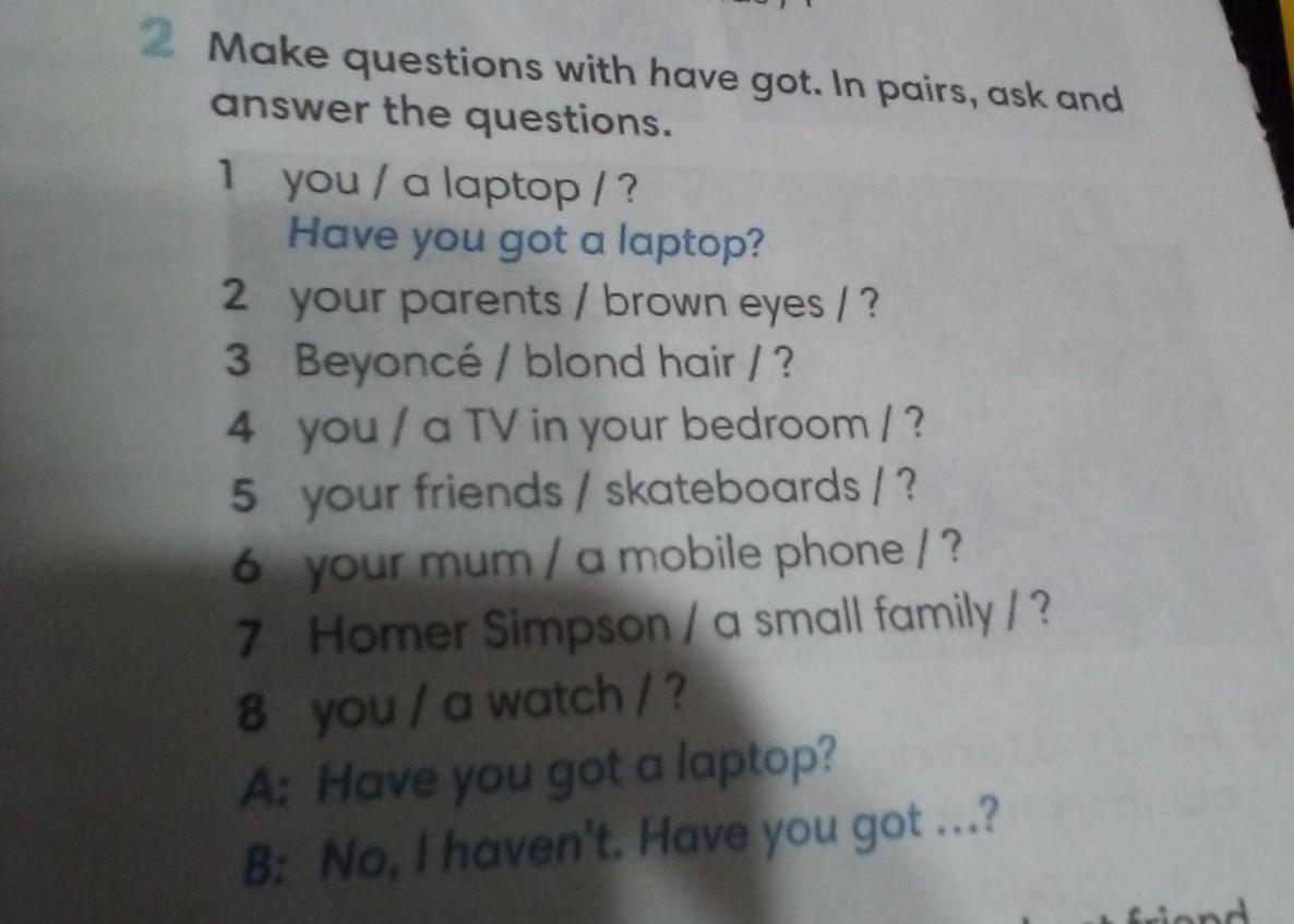 Ставте запитання до have got . Парами задавайте питання та відповідайте на них.