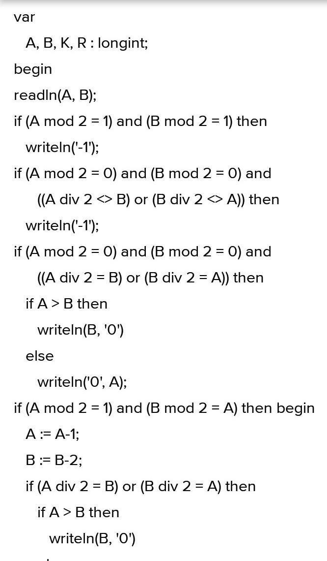 Программа получает на вход два целых числа A и B, записанных в отдельных строках. 1 ≤ A ≤ 109, 1 ≤ B ≤ 109.