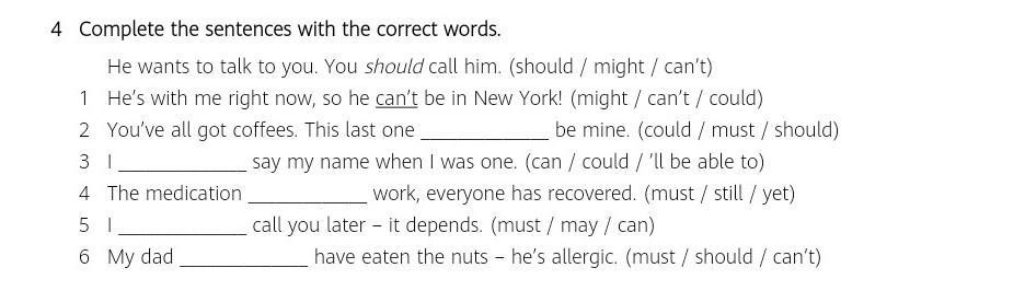 6 My dad ______________ have eaten the nuts – he’s allergic. (must / should / can’t
