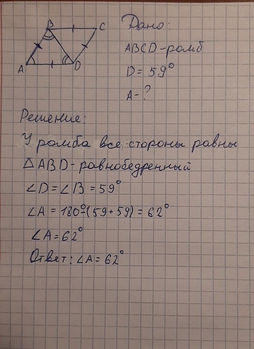 сумма углов треугольника равна 180° и что бы найти А я отняла от 180 сумму двух известных углов