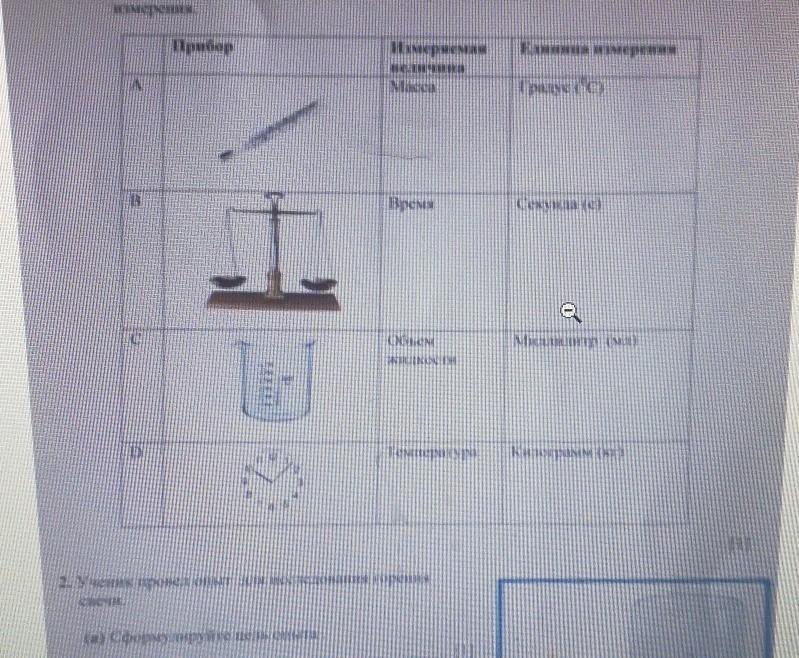 выберите верный вариант соответствия прибора измеряемой величины и единицы измерения