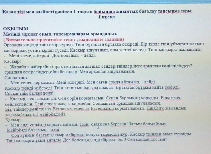 3. Берінен сұрақтарға мәтін мазмұны бойынша жауап жазыңыз