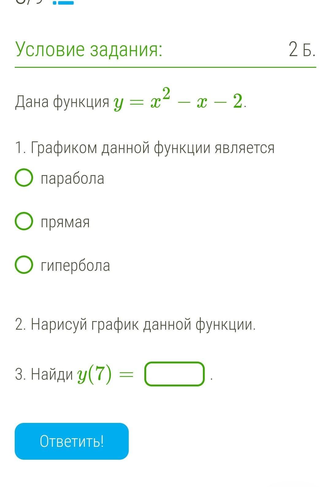 3. у (7) = 49-7-2 = 40