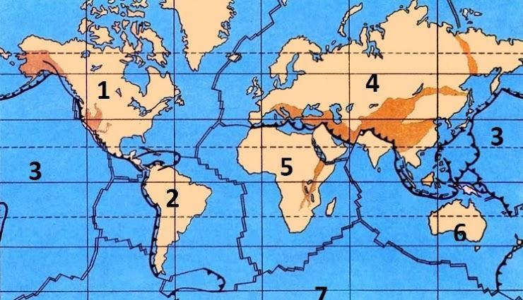 Ответьте на вопросы, используя рисунок и физическую карту. Перечислите вулканы (3 примера), которые находятся на литосферной плите под номером 2.