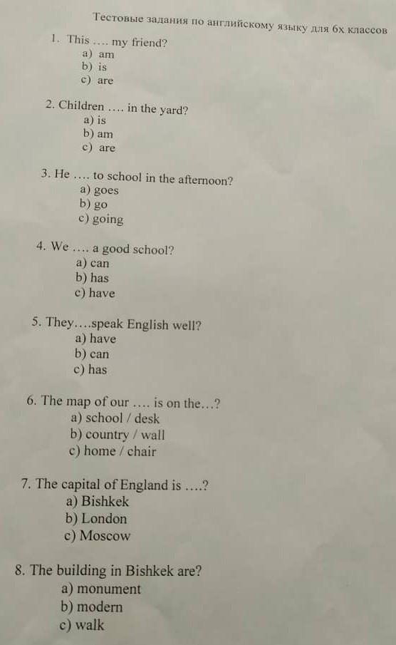 1. b, 2c, 3. a, 4c, 5b, 6b, 7. b, 8b