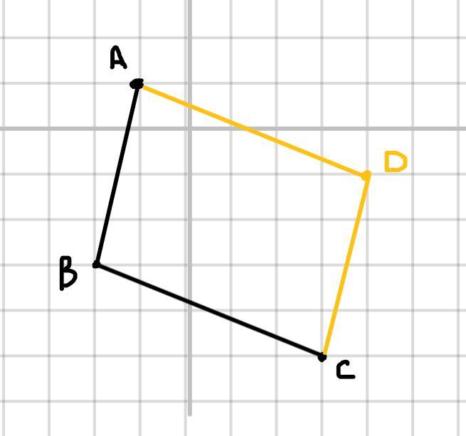 Три вершины параллелограмма АВCD имеют координаты А (-1; 1); В (-2; -3) С (3; -5). Найдите координаты вершины D.
