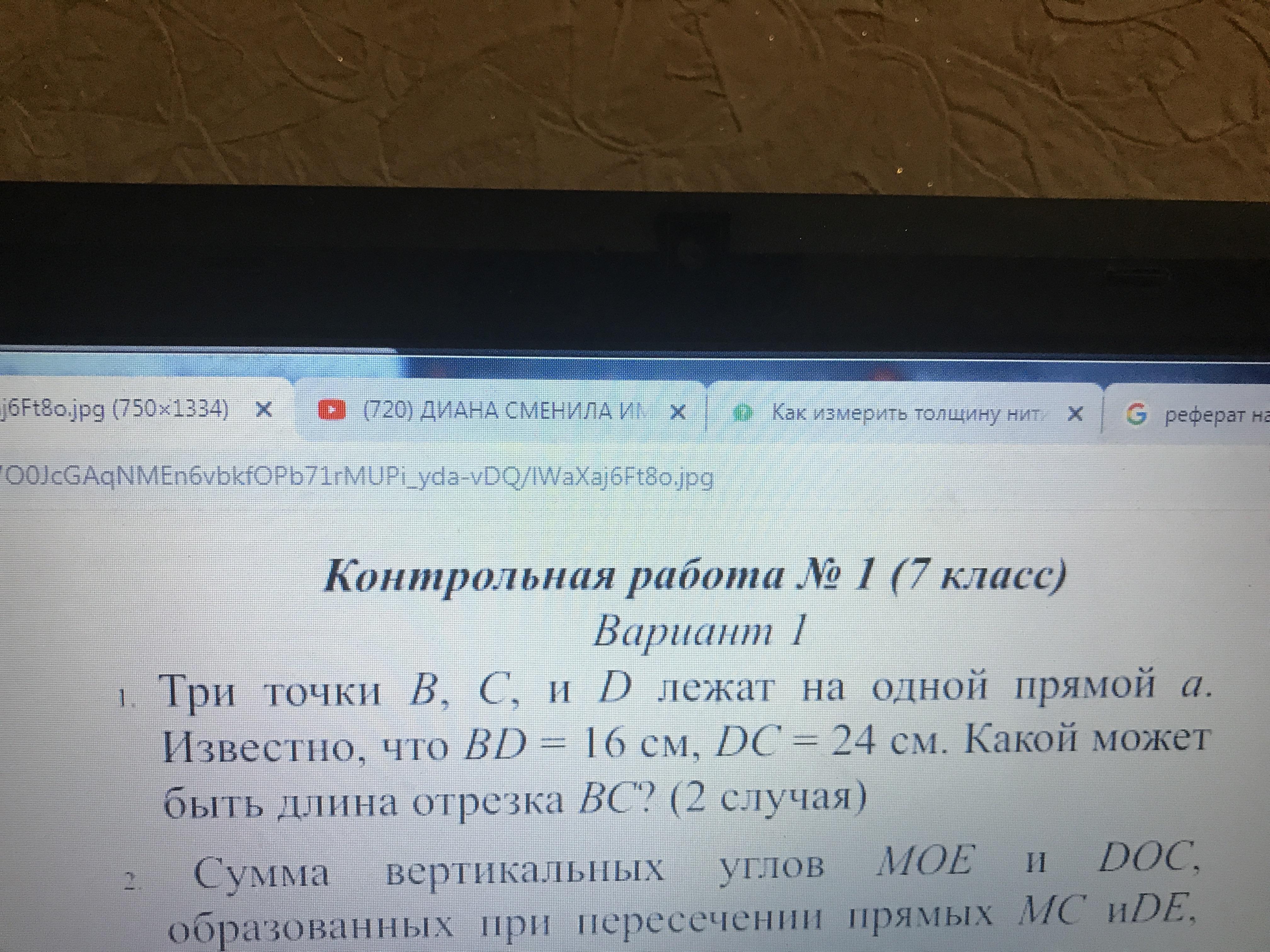 Три точки b, c и d лежат на одной прямой a. известно, что b это 16 см ,dc=24см .какой может быть длина отрезка bc? (два случая)