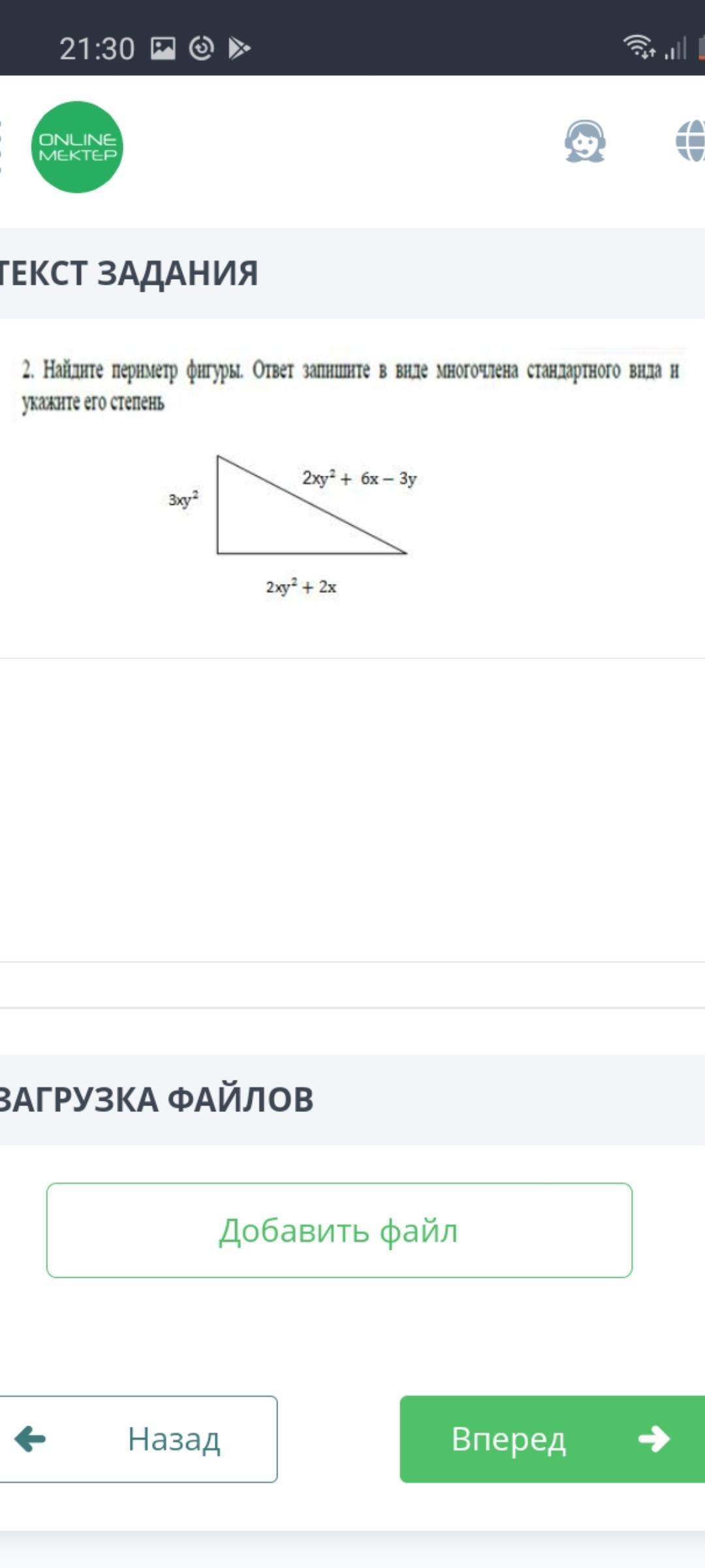 Найдите периметр фигуры. Ответ запишите в виде многочлена стандартного вида и укажите его степень.