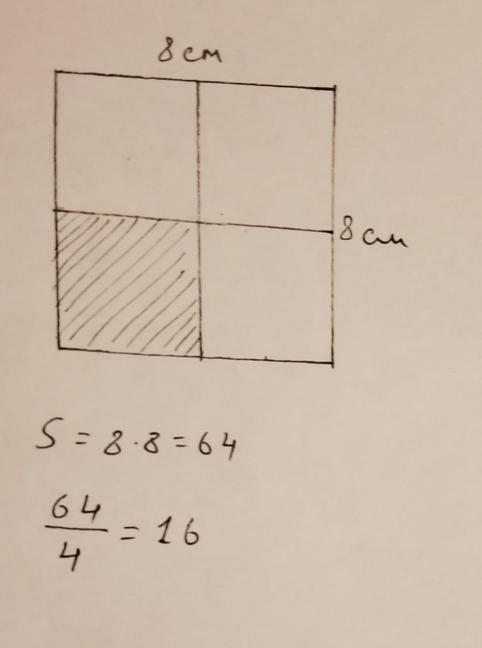 Площа квадрата = а^2 = 8^2 = 64 см^2.