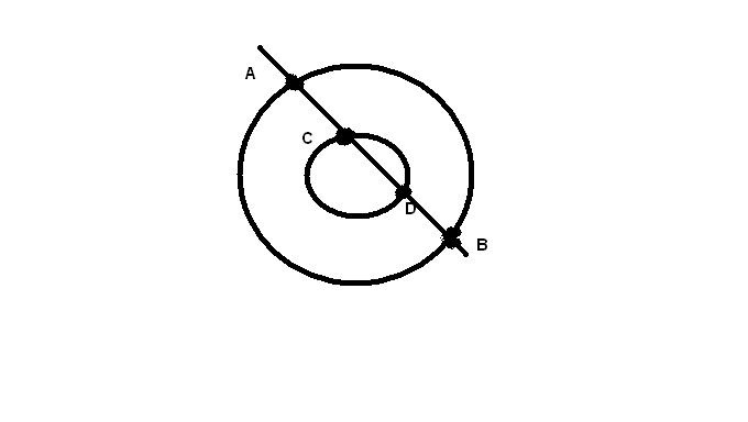 нарисуй две замкнутые линии, одну внутри другой проведи незамкнутую линию которая дважды пересекает каждую замкнутую линию. обозначь буквами точки пересечения.