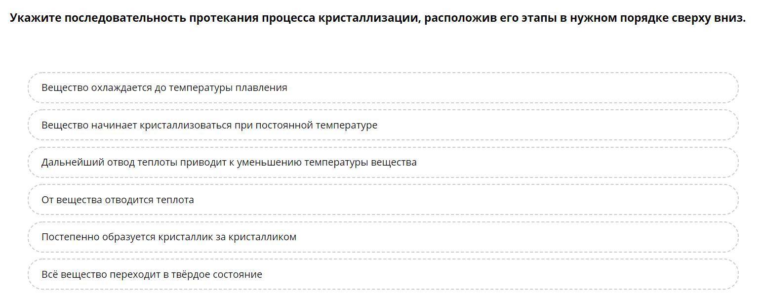 Укажите последовательность протекания процесса кристаллизации расположив его этапы в нужном порядке