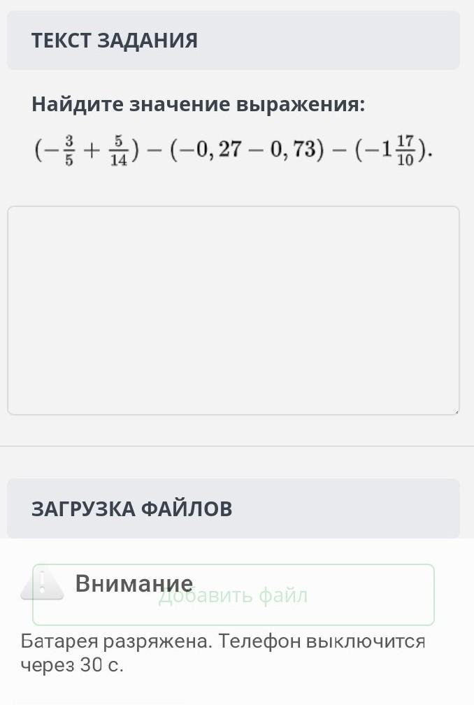 ( - 3/5 + 5/14 ) - ( - 0,27 - 0,73 ) - ( - 1целая 17/10) = ( - 42/70 + 25/70) - ( - 1 ) - ( - 2целых 7/10) = ( - 17/70) + 1 + 2,7 = - 17/70 + 3 целых 7/10 = 3целых 49/70 - 17/70 = 3целых 32/70 = 3целых 16/35