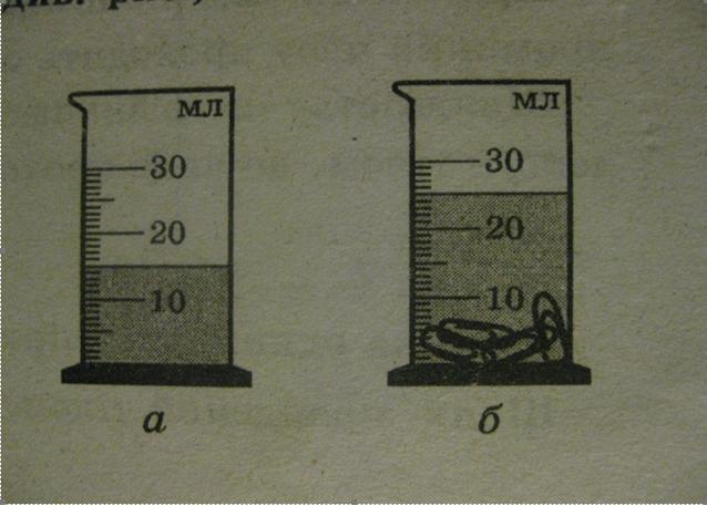 2) 25 - 15=10 мл=10 см³ - объем 50 скрепок