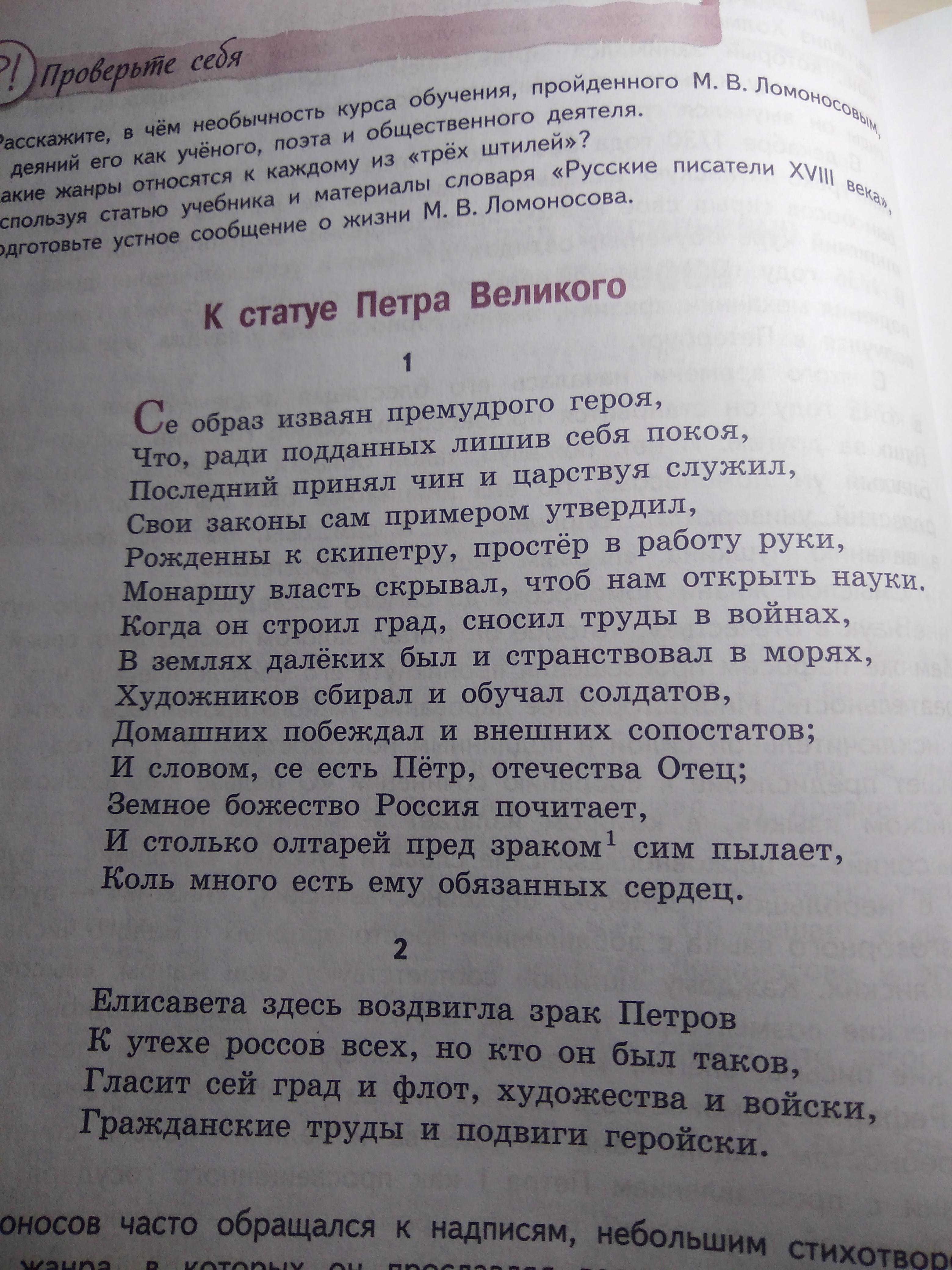 К статуе Петра великого – это знаменитая поэма Ломоносова, которая была написана между 1743-1747 годами. Она подробно рассказывает о некоторых эпизодах из жизни царя Петра.