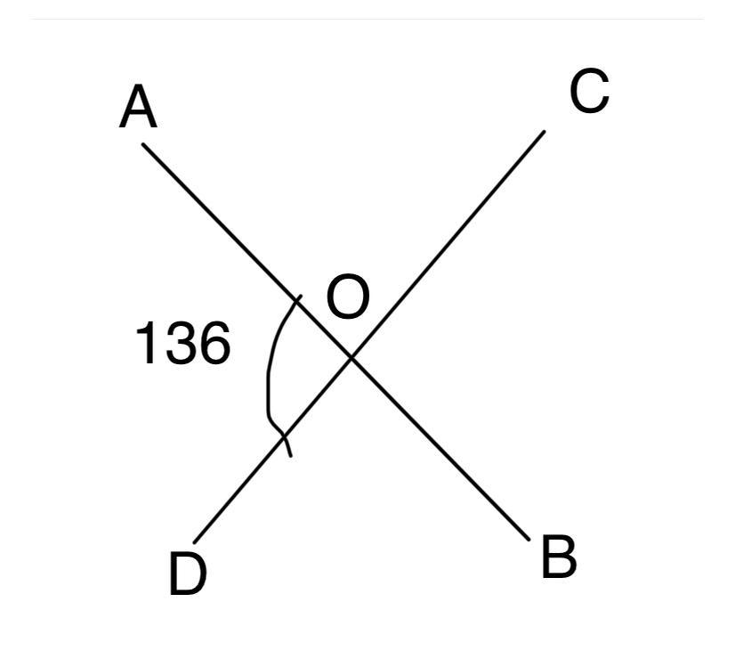 при пересечении двух прямых, образовались углы. Если один из них равен 136 градусам. Найдите градусную меру каждого из полученных углов?