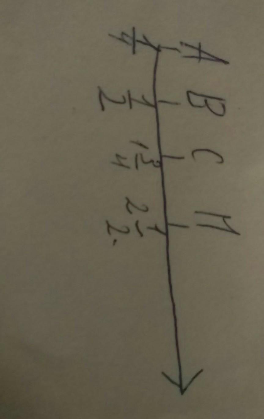 4 клеток тетради. Отметьте на нем точки с координатами: A1/4, B(1/2 ),